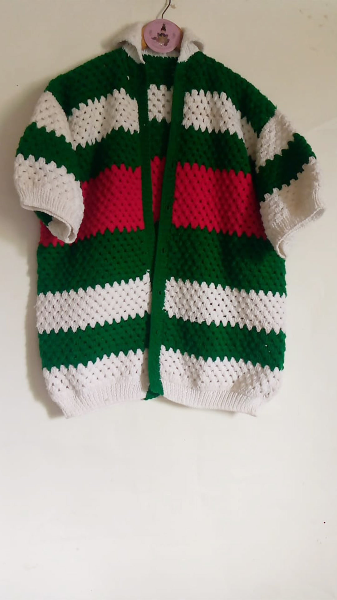 This soft and cozy shirt features intricate crochet work inspired by three iconic Bengali designs, blending traditional craftsmanship with modern flair. Perfect for making a bold fashion statement, it showcases the essence of Bangladeshi culture.