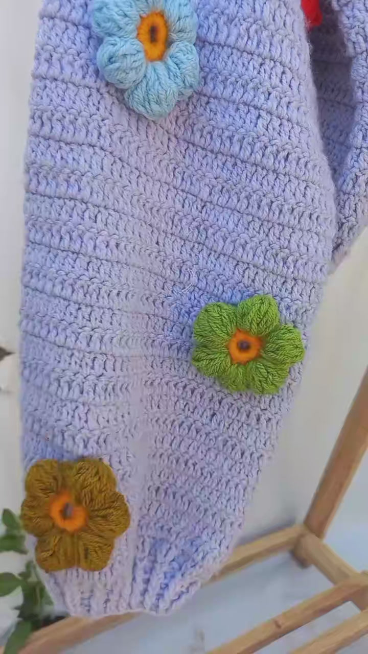 This cute Blossom Cardigan will keep you warm and stylish all winter long! Its roomy sleeves with fitted cuffs provide a comfortable fit, while the soft crochet material gives a cozy feel. The cropped length and adorable mini flower design make it perfect for a casual day out. Stay cozy and chic with the Blossom Cardigan!