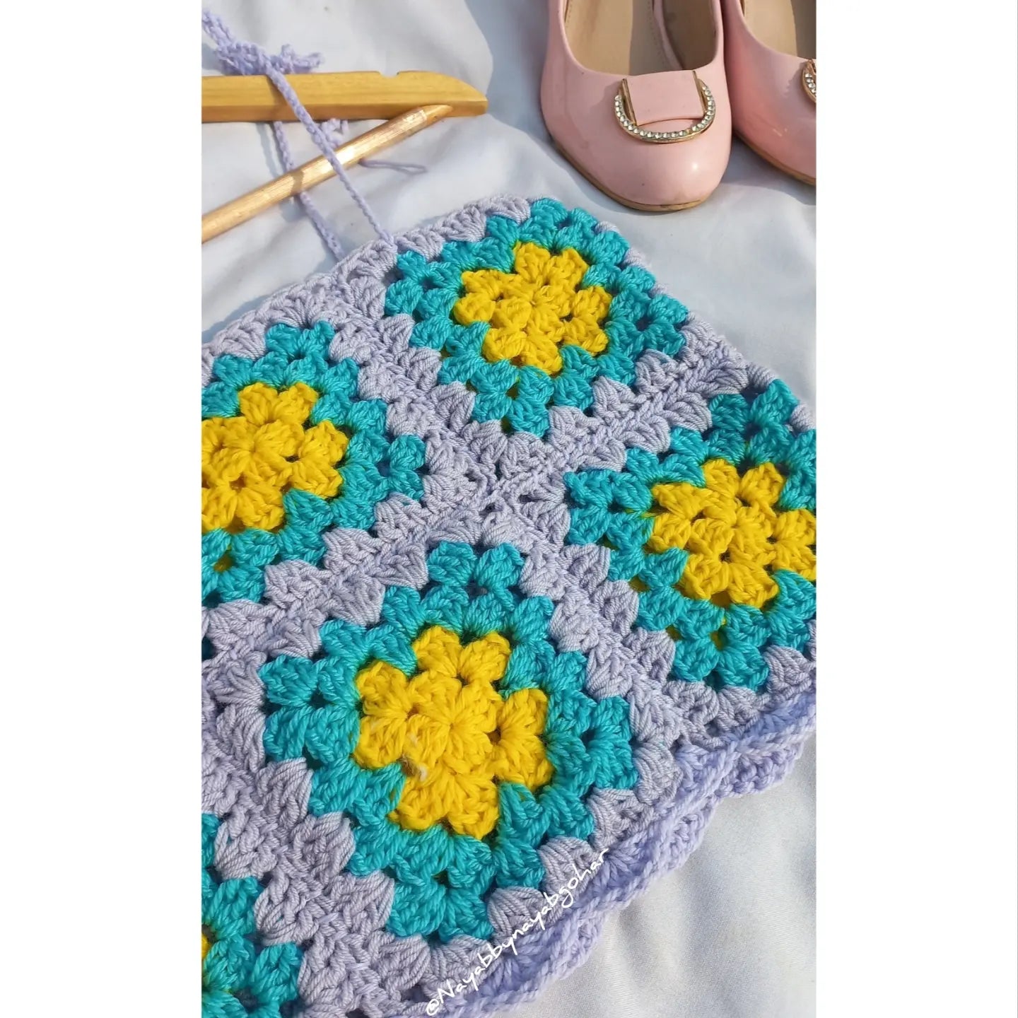 Introducing the Granny Croptop! Lightweight and airy, this modern crochet top is perfect for hot summers. Easily style it with wide leg jeans or a skirt for a trendy and comfortable look. Upgrade your wardrobe with this must-have piece.