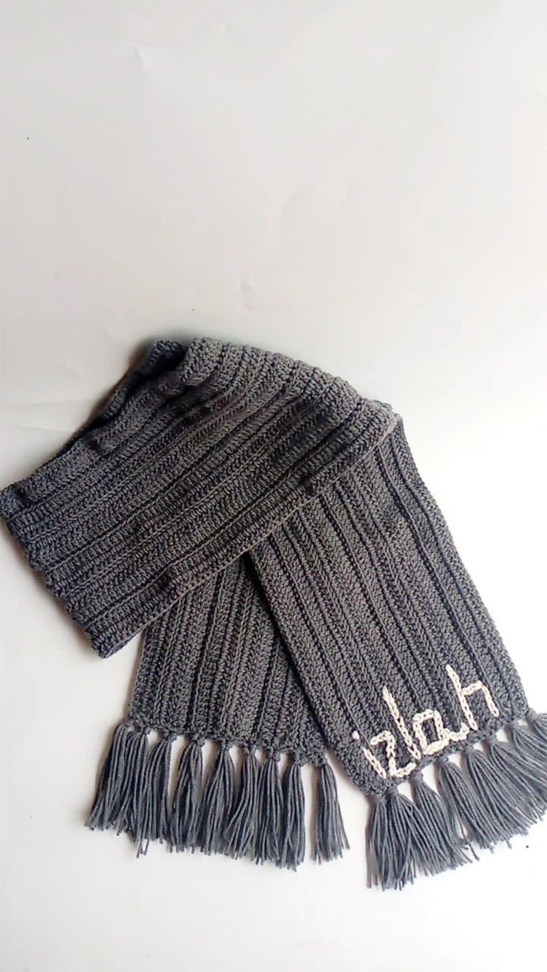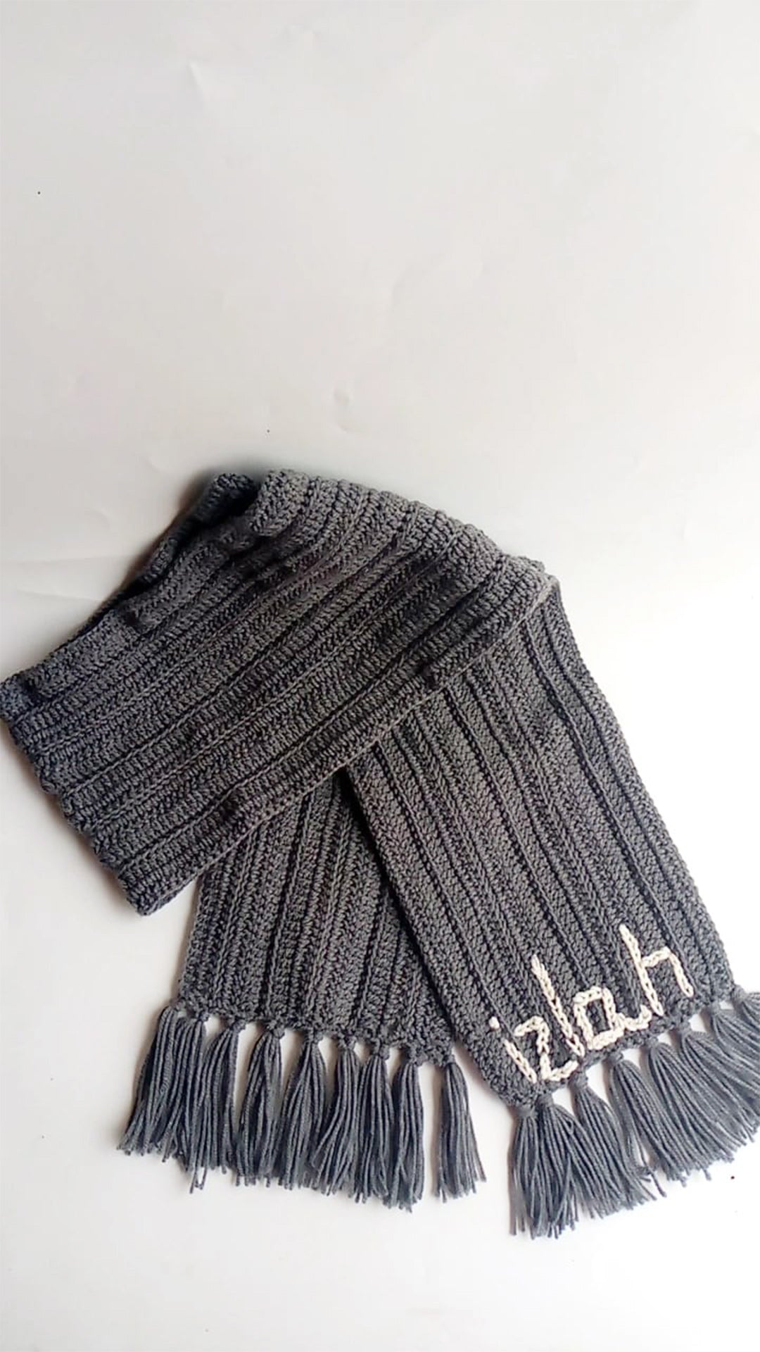 This crochet muffler is perfect for men in winter, providing warmth and a personal touch with a custom name. Stylish and cozy, it’s ideal for cold weather.