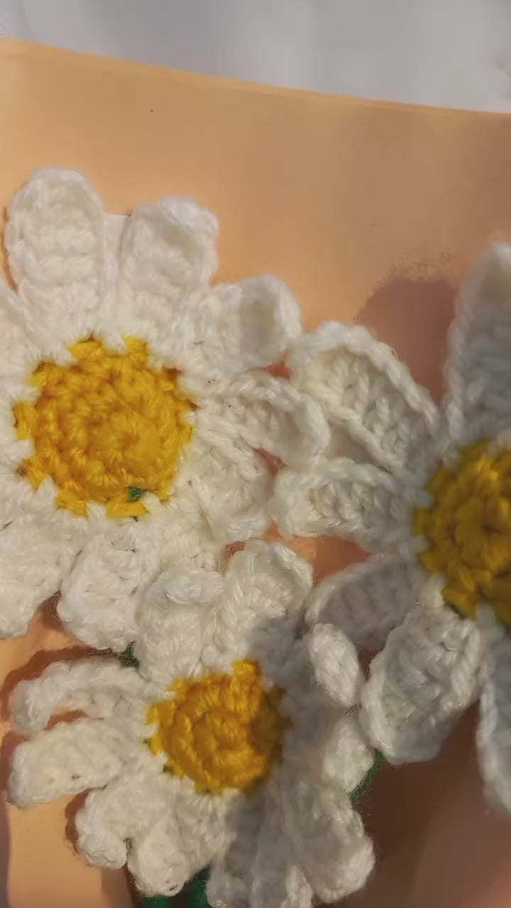 Give the gift of simplicity and softness with our 3 Daisy bouquet. This mini size bouquet, made with delicate crochet flowers, is perfect for budget-friendly gift giving. Let these dainty flowers represent your heartfelt sentiment.