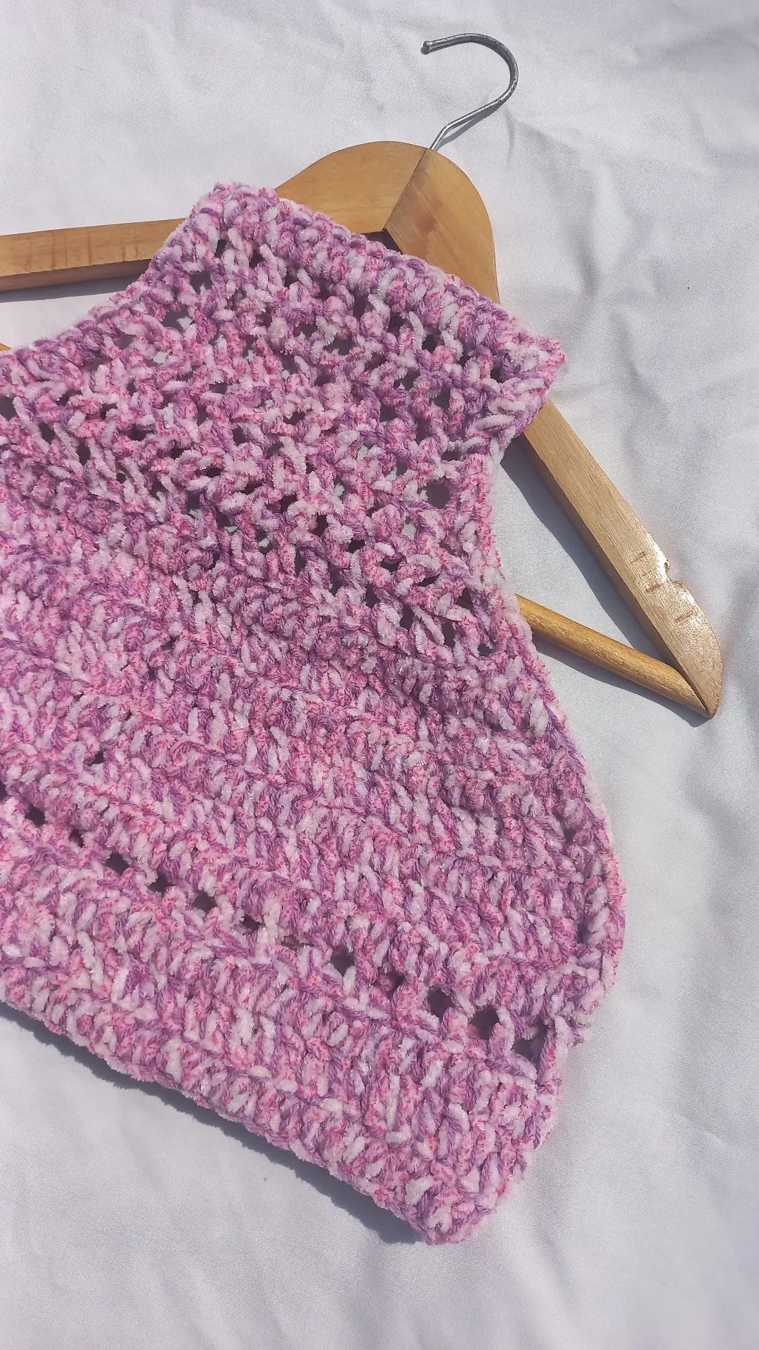 Enhance your wardrobe with our luxurious velvet halter top. This modern-cut top is hand-crocheted with a trendy twist, combining delicate crochet with soft, plush velvet. A timeless piece that exudes confidence and style.