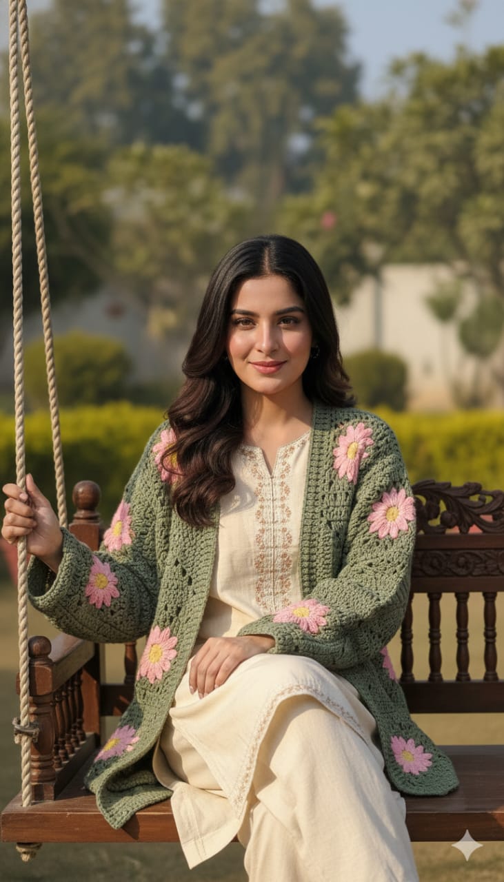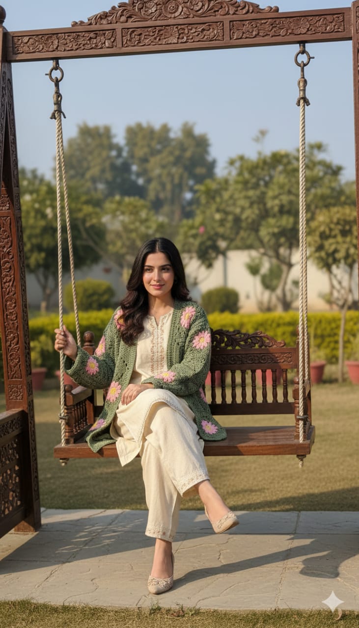 This cardigan features a dropped shoulder,straight and relaxed fit with sage green and main colour.